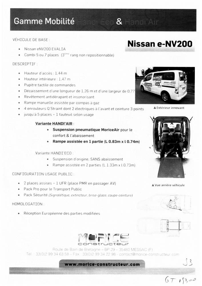 Un point négatif ? A priori non ! « Nous apprécions la modularité du véhicule », explique-t-elle. Le système de suspension pneumatique équipe la version Handi’Air du e-NV200 transformé, avec une rampe d’accès assistée en une seule partie d’une longueur de 0,83 m. Mais pas le modèle Handi’Eco, qui, lui, nécessite une montée en 2 parties qui s’étale manuellement, cette fois-ci sur 1,33 m, du fait de l’absence d’abaissement du véhicule à l’arrière. Morice Constructeur communique beaucoup sur l’adéquation de l’engin avec le milieu urbain.