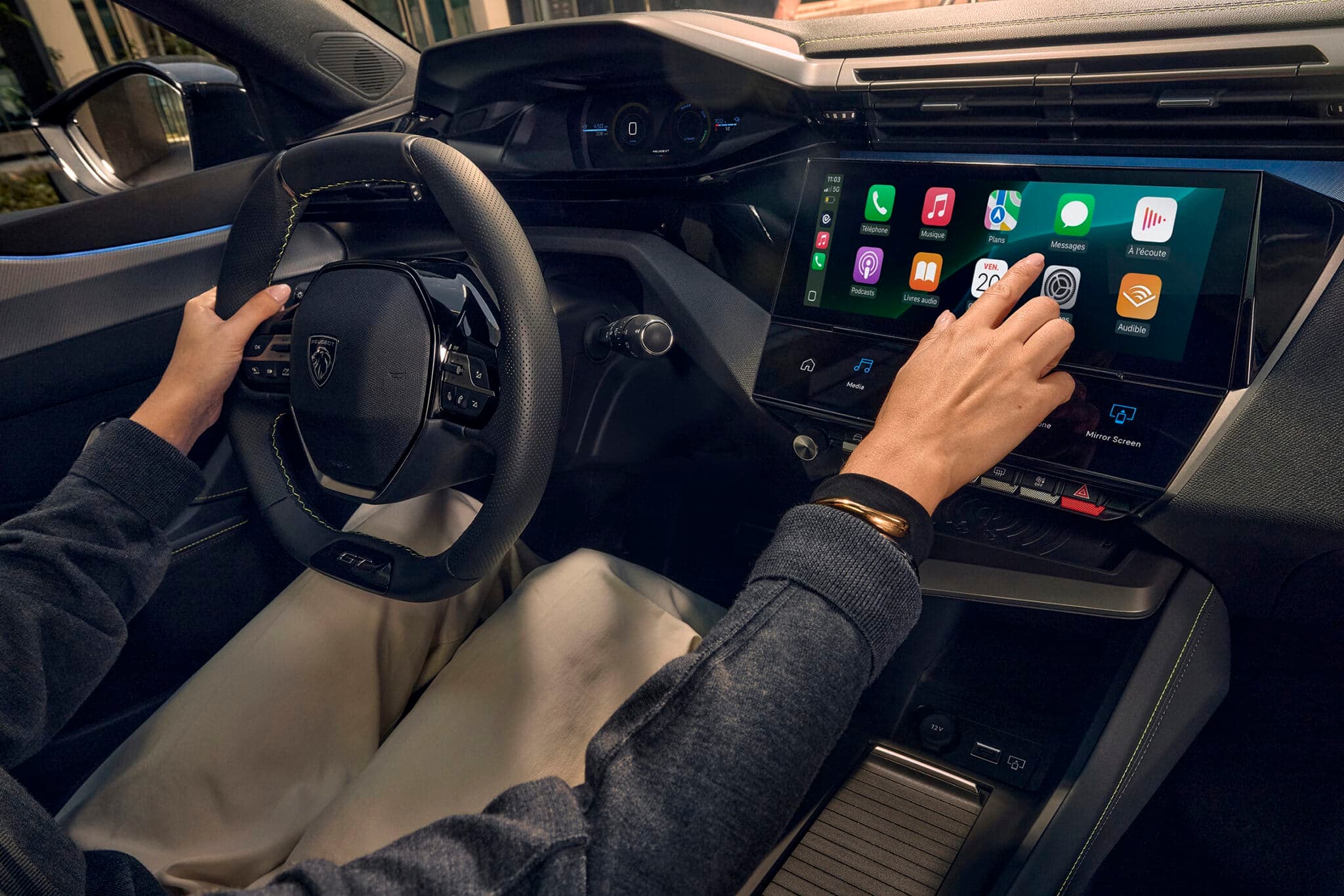 EN SAVOIR PLUSL’intérieur des nouvelles 308 et 308 SW prolonge la montée en gamme amorcée par Peugeot. Le PEUGEOT i-Cockpit®, désormais emblématique de la marque, atteint ici un niveau de sophistication inédit. La position de conduite reste fidèle à la philosophie de la maison — volant compact, combiné d’instruments tête haute, écran central tactile de 10 pouces — et chaque élément a été affiné. Le nouveau graphisme du combiné d’instruments, dorénavant et 3D, en option sur la finition GT et de série sur la finition GT Exclusive, affiche des animations épurées et une profondeur d’affichage qui facilite la lecture tout en renforçant le plaisir visuel.