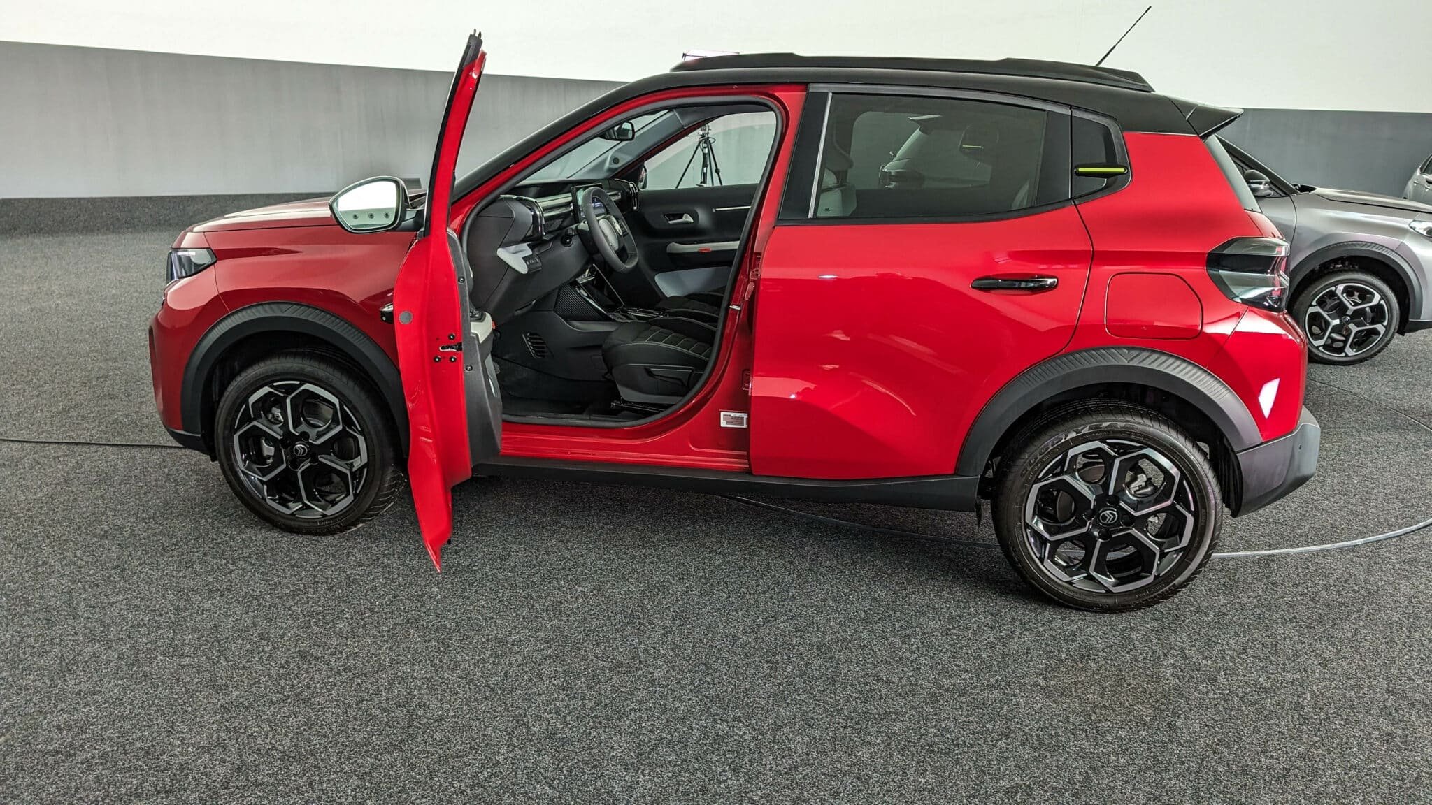 Pour cette nouvelle présentation, Citroën n’exposait qu’une seule ë-C3, en finition Max. Sachez que celle-ci était encore à l’état de « prototype » et que nous ne pouvions donc pas interagir avec le système multimédia. Impossible donc d’apprécier la fluidité du système ou même d’en découvrir l’interface, les options ou encore l’intégration d’Apple CarPlay et Android Auto, sans fil, s’il vous plaît !