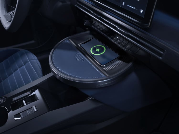 La console centrale est en revanche surplombée par une sorte de plateau circulaire nommé tavolino (« petite table »). Habillé de cuir et de plastique nervuré, il est idéalement placé sous l’écran d’infodivertissement pour servir de support à un smartphone. L’habitacle est complété par 3 ports USB-C. Et je suis sûr que vous avez déjà vu quelque part le sélecteur de rapport ou de modes de conduite…