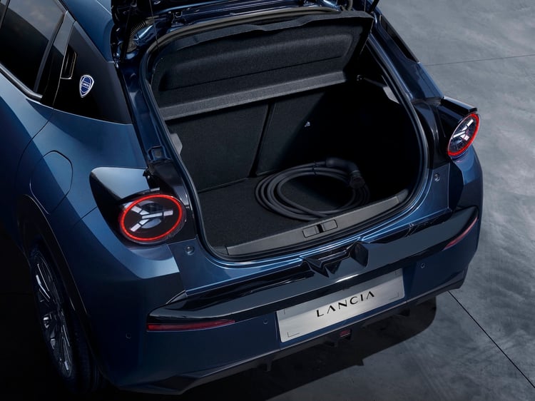 Ceci est une traction, le couple est donc renvoyé sur les roues avant. Un choix qui ne permet donc pas de disposer d’un coffre antérieur. Lancia ne nous a pas encore communiqué la capacité de la soute, mais elle devrait voisiner avec celle de la Peugeot e-208 (311 litres).
