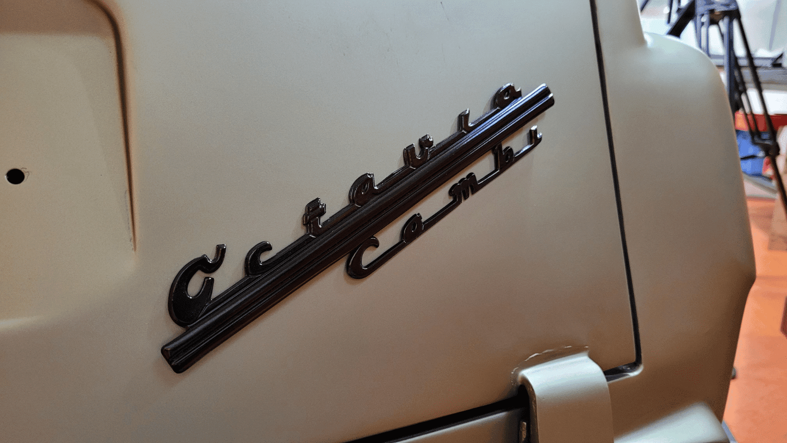 Tous les éléments chromés de la carrosserie ont été passés en noir satiné pour diverses raisons. D’abord parce que les émissions causées par le processus de chromage sont estimées à 500 fois plus toxiques que le diesel et peuvent provoquer des problèmes de santé graves allant jusqu’au cancer du poumon. Ensuite, parce que c’était bien simple pour remettre en beauté des éléments fatigués et sinon introuvables. Et enfin, tout simplement parce que nous trouvions que cela faisait aussi un contraste intéressant avec la peinture.