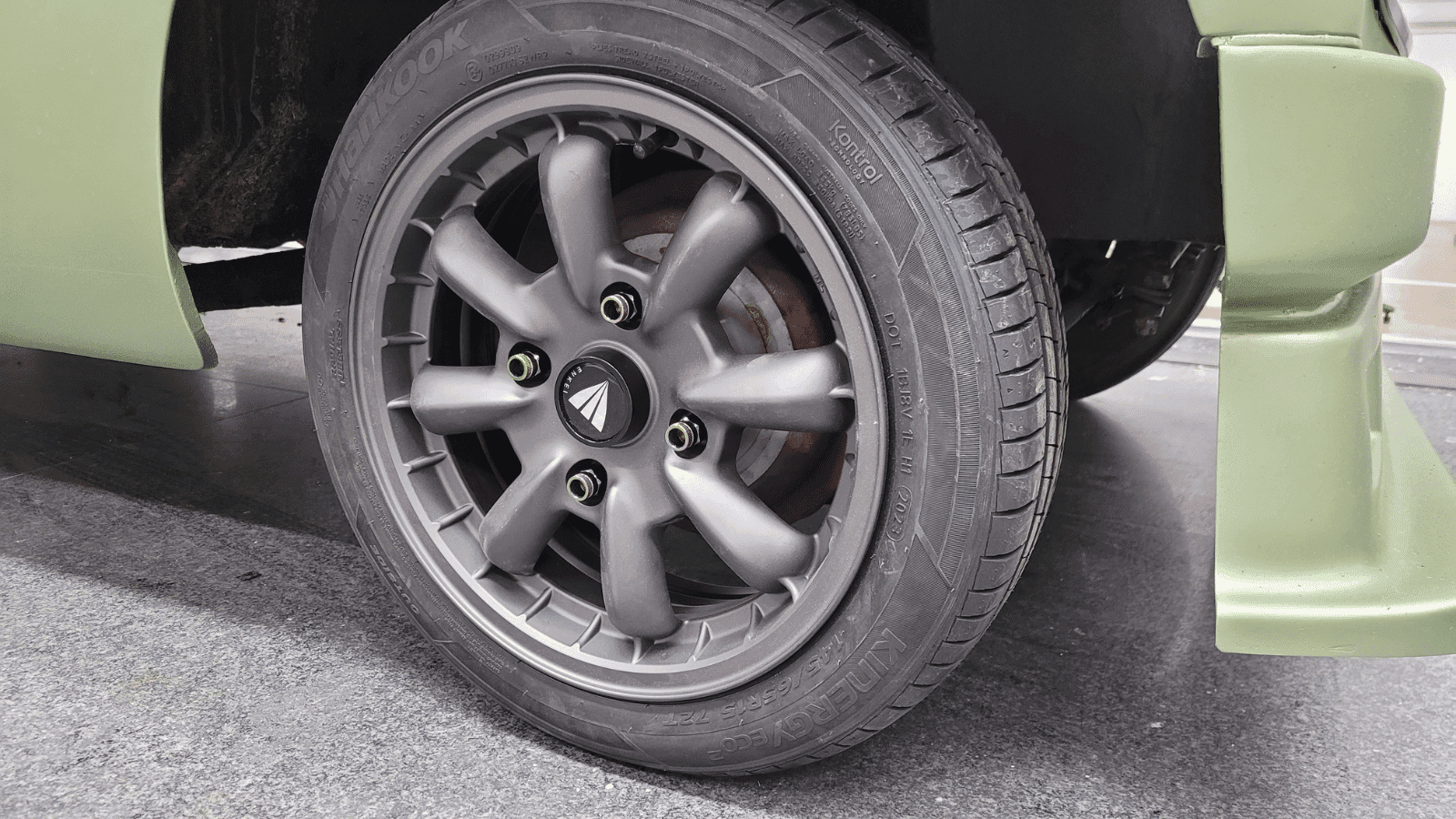 Petit aparté enfin pour revenir sur notre problème de montage des roues de l’épisode précédent : les jupes arrière ont été légèrement retouchées pour ne plus venir faire contact avec le pneu et nous avons fait faire des élargisseurs de voie en aluminium d’une légèreté remarquable pour libérer la jante de la biellette de direction et mieux remplir l’aile au passage.