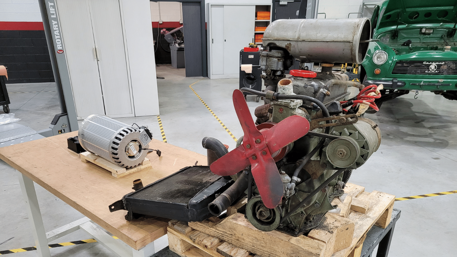 Cette semaine, c’est le grand ménage : on a démonté tous les éléments de la motorisation thermique de notre Skoda Octavia Combi de 1968 et on fait l’inventaire de toutes les pièces que nous avons rassemblées pour la conversion à l’électrique, en pesant tout soigneusement. Suivez le guide !