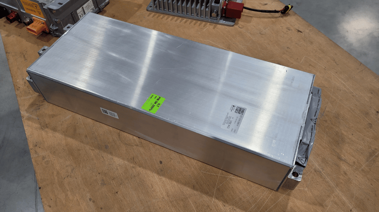 Témoignage – Philippe a mis un moteur de Tesla Model 3 dans sa DeLorean DMC-12 !Présentons à présent nos systèmes de stockage d’énergie, comme aime à les appeler Alexandre. Et dans ce domaine, le thermique fait très fort car il se limite à un bête réservoir de 32 litres. Côté électrique par contre, la liste est plus longue et plus lourde. On commence avec un convertisseur DC-DC qui prend le rôle d’un alternateur classique en transformant la tension de 150 V en 12 V pour recharger la batterie d’accessoires.