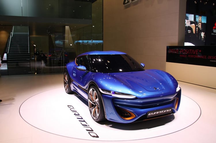 Si la plupart des moteurs des voitures électriques actuelles fonctionnent généralement à plus de 300 V, ceux embarqués à bord de la Quantino affichent une tension de seulement 48 volts. Au total, quatre moteurs électriques de 25 kW animent la Quantino, soit 100 kW au total, avec une vitesse annoncée à 200 km/h.