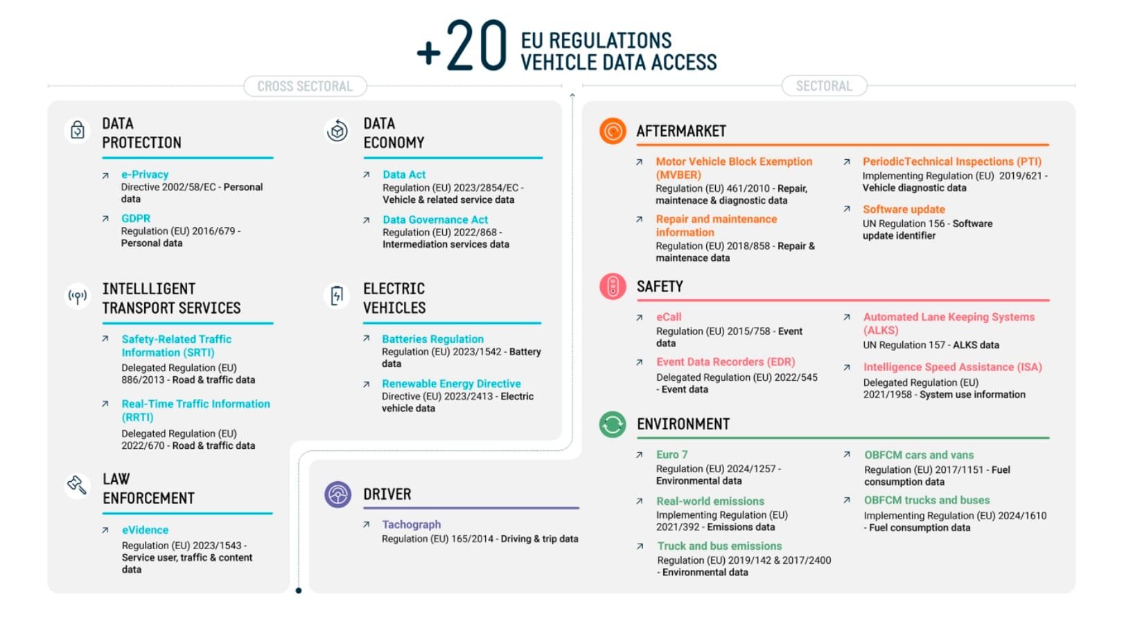 Si le potentiel est énorme, le cadre réglementaire actuel reste complexe. Plus de 20 textes législatifs s’appliquent à divers aspects du partage de données dans l’automobile, du RGPD à la future Loi sur les données (Data Act), en passant par les règlements sur l’homologation, les systèmes de transport intelligents ou les dispositifs de cybersécurité.