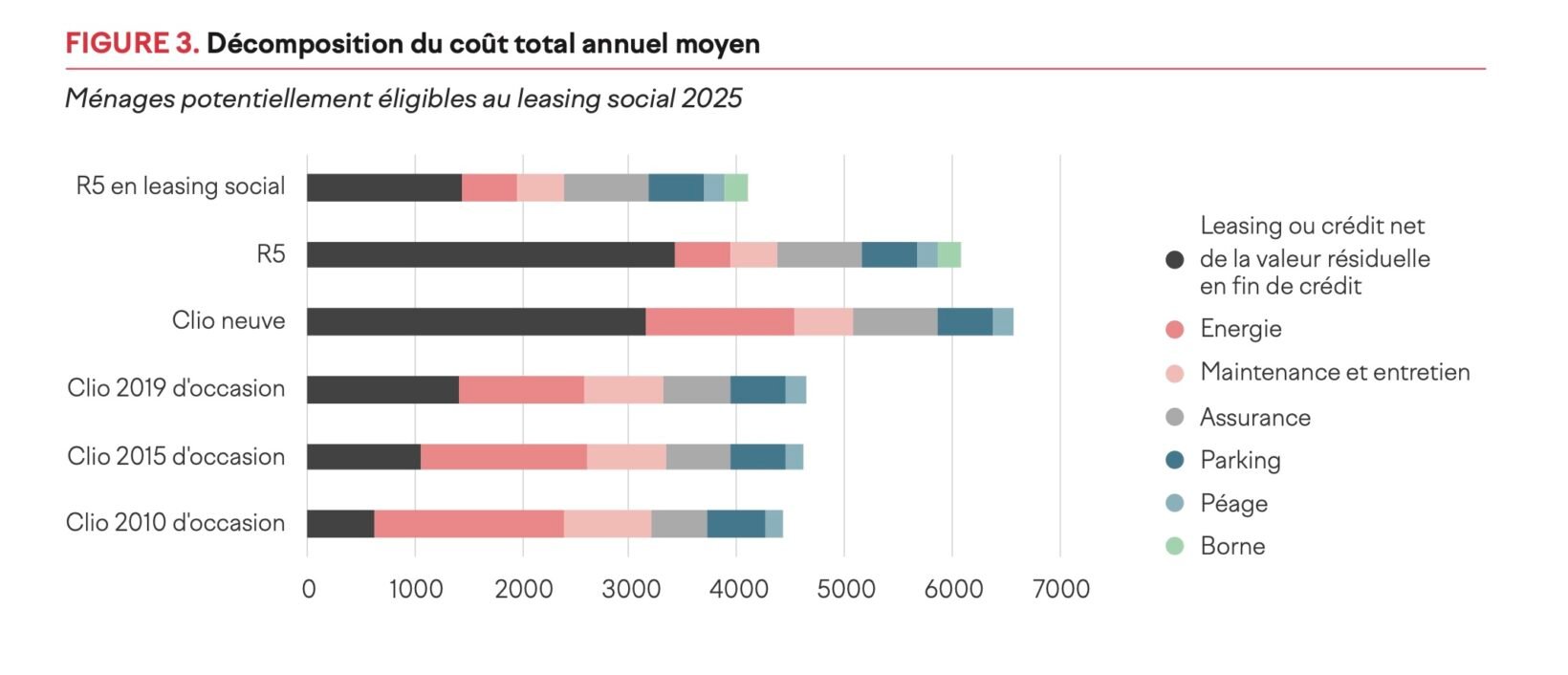 Premier enseignement de l’étude (même si ce n’est pas une surprise) : oui, le leasing social produit un gain économique réel et mesurable. En comparant le coût total de possession d’une R5 électrique acquise via le dispositif avec celui d’une Renault Clio thermique, les chercheurs constatent un avantage net en faveur de l’électrique. En moyenne, le TCO (coût total de possession) ressort inférieur de 38 % à celui d’un modèle neuf équivalent, et reste encore de 7 à 12 % plus bas que celui des Clio d’occasion. Autrement dit, l’équation économique est favorable dans la majorité des cas étudiés.