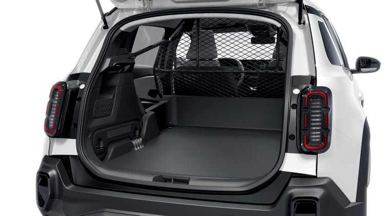 La charge utile est de 345 kg… soit finalement plus que la fourgonnette F4 d’origine, qui était à 300 kg. La longueur de chargement est de 1,20 m. Une grille proposée en série sur la version Société Van et en option sur la version Société Réversible sépare la partie avant de l’habitacle de la zone de chargement. L’équipement inclut un cache-bagages et un tapis anti-dérapant.