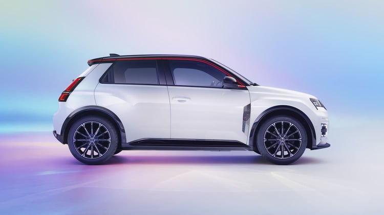 La R5 débutera sa carrière avec sa configuration technique « haut de gamme ». Soit un moteur de 110 kW (150 ch) avec une batterie de 52 kWh. Celle-ci donne une autonomie mixte WLTP d’environ 400 km. Il y a en série le chargeur AC 11 kW bidirectionnel et la recharge DC 100 kW.