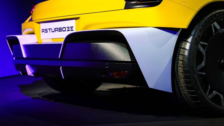 Tout comme les versions Turbo et Turbo 2 de l’époque, la Turbo 3E est une propulsion. Et cette transmission inédite est assurée par deux gros moteurs de 200 kW (approximativement 270 chevaux) situés dans chaque roue, pour un total de 400 kW (540 chevaux) et 4 800 Nm de couple. Des chiffres hallucinants qui méritent cependant une légère nuance, car il s’agit du couple à la roue qui n’est pas exactement la mesure habituelle… Figurez-vous que c’est cette technologie inédite du moteur-roue que Renault considère comme étant le « Turbo » actuel, les latences en moins.