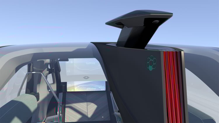 Il peut embarquer jusqu’à six passagers y compris à mobilité réduite grâce à un large hayon avant et une rampe rétractable plutôt bien intégrée. Fermé, la hauteur du véhicule n’excède pas 1,60 mètres pour créer un champ de vision parfait autour de la « tour de contrôle ». Cet aileron, qui se déploie automatiquement au démarrage, rassemble tous les équipement nécessaires à la conduite autonome (radars, lidars, ultrasons, caméras). L’engin pèse tout de même 1,7 tonnes dont « 300 kilos de batteries » et un seul moteur électrique à l’avant, selon Renault.