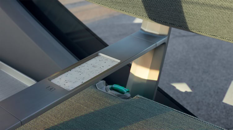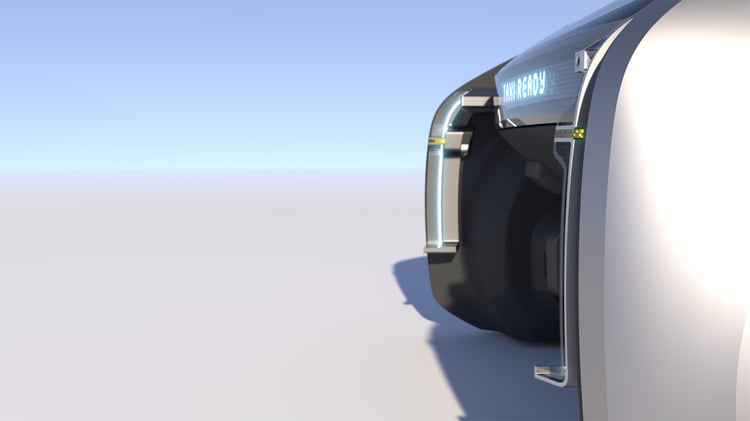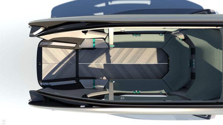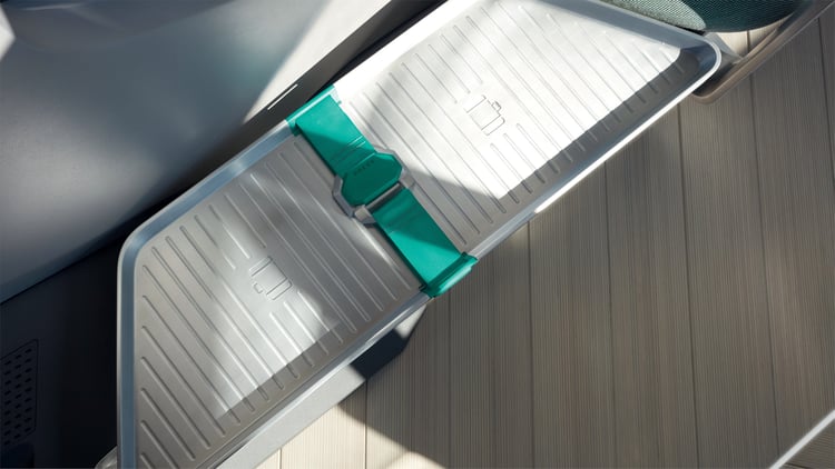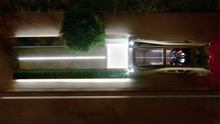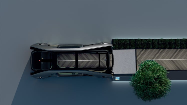 L’EZ-GO est accompagné d’une station dédiée sur laquelle il se recharge par induction. Cette plateforme longue de 7,5 mètres et large de 3 mètres pourrait faire office de quai haut-de-gamme pour d’éventuels services de transport collectifs premium. Avec l’électrification, le partage de mobilité est l’autre grand enjeu des voitures du futur : face à la saturation du trafic et le manque d’espace en ville, il sera peut-être interdit de circuler seul à bord d’un véhicule. En l’absence d’un transport public fiable et sécuritaire à proximité, EZ-GO pourra s’ériger en solution.