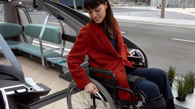 Dépourvu de volant et de quelconque commande, l’EZ-GO est équipé d’un pilote automatique de niveau 4 (sur 5 à l’échelle européenne) et peut être commandé à distance. Long de 5,20 mètres et large de 2,20 mètres, il dispose de quatre roues directrices pour une maniabilité optimale en milieu urbain.