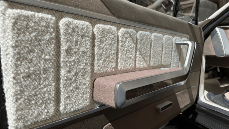 Mondial de l’Auto 2024 : quelles seront les nouveautés électriques chez Renault et Alpine ?Les sièges « pétales » d’origine ont été réinterprétés et se parent de tissus inspirés de l’ameublement : « un satin chiné en laine Mérinos très fine pour le tissu marron et un bouclé de laine léger et délicat, haut et épais pour le tissu beige ».