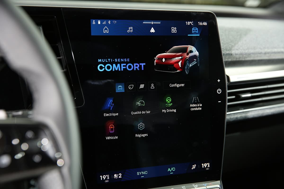 Ce test a été l’occasion de mettre en lumière les performances de régulation thermique du système de climatisation du Renault Scenic e-Tech. Sous un soleil de plomb par 30 °C, le dispositif s’est montré aussi rapide que stable pour refroidir l’habitacle, aussi bien à l’avant qu’à l’arrière. Cependant, cela se paie au prix d’une consommation plutôt élevée pour un véhicule qui n’est pourtant pas équipé d’un toit en verre panoramique. C’est en tout cas vrai pour les premières minutes de fonctionnement où la baisse des températures à bord est importante.
