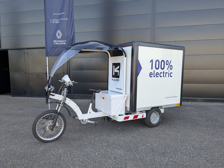 Renault Trucks se félicite d’une gamme full-liner E-Tech de sept modèles électriques pour le transport. Le vélo cargo Kleuster Freegônes est le plus petit de la gamme, avant le Renault Trafic E-Tech et le Renault Master E-Tech. Les deux fourgons ne font pas partie du même constructeur, puisqu’ils sont dans le groupe Renault. Mais le nom en commun des deux marques les intègre dans cette gamme.