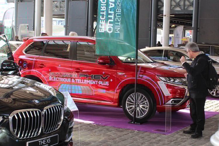 Modèle pionnier en passe de tirer sa révérence selon un conseiller commercial de la marque présent sur place, le Mitsubishi Outlander PHEV côtoyait les Mercedes GLC, Volvo XC40, Opel Grandland X, Ford Kuga Plug-in Hybrid et DS 7 Crossback E-Tense.