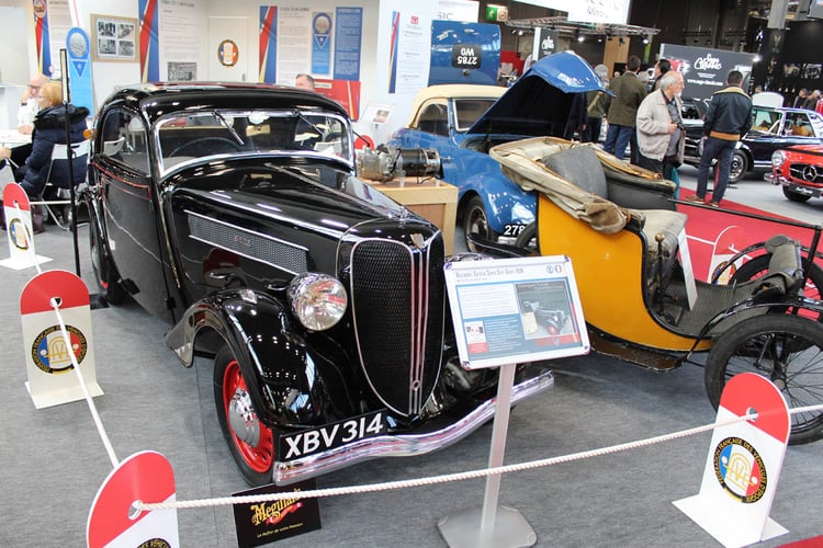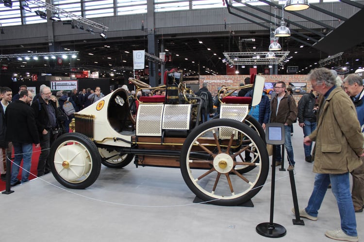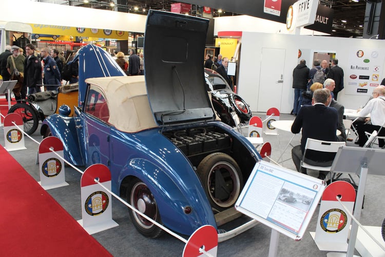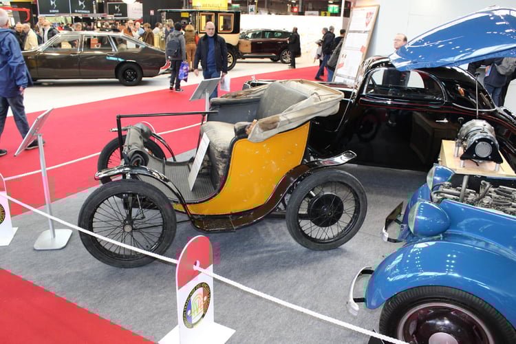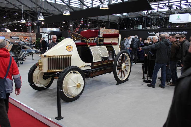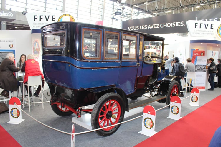 Sur son stand au salon Rétromobile 2020, LA FFVE exposait 4 voitures et 1 scooter électriques produits dans un intervalle de 1908 à 1942.