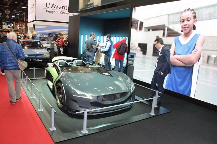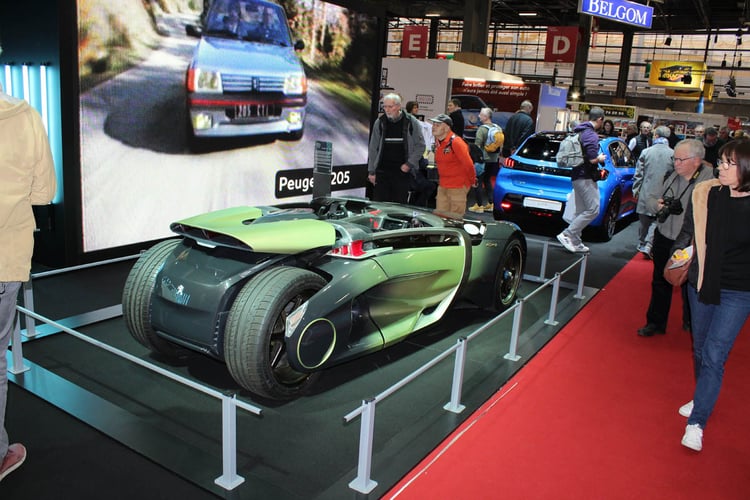 Encore un maillon avant d’arriver à l’actuelle Peugeot e-208 également exposée à Rétromobile : le concept EX1 de 2010, de type roadster biplace à 4 roues motrices, dont celles à l’arrière sont rapprochées.