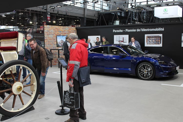 « Porsche – Pionner de l’électromobilité ». Pour justifier le nom de son stand, Porsche exposait 2 voitures que 120 ans séparent : la Lohner-Porsche Semper Vivus de 1900 et la Taycan Turbo qui arrive sur nos routes.