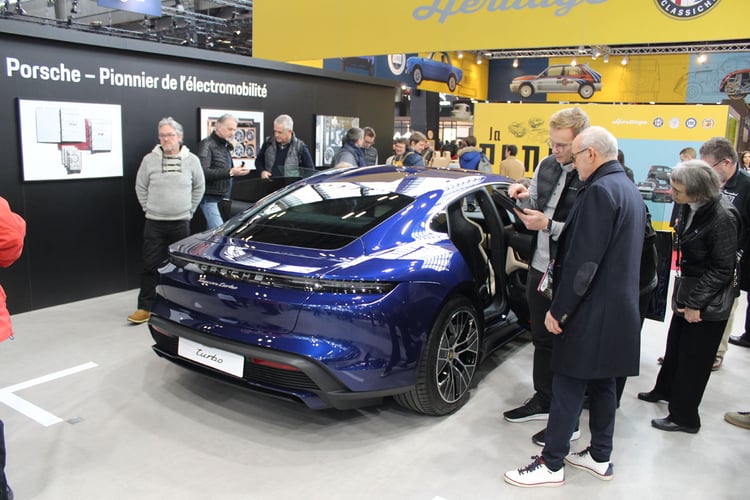 Sur le stand du constructeur allemand, il était plus facile de faire le tour du Semper Vivus que de s’installer à l’intérieur de la Taycan Turbo littéralement prise d’assaut. En total contraste également avec la Peugeot e-208 qui semblait parfois longtemps délaissée dans cette antre dédié à la passion de l’automobile.