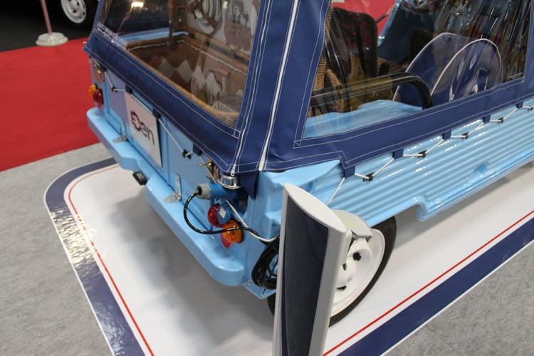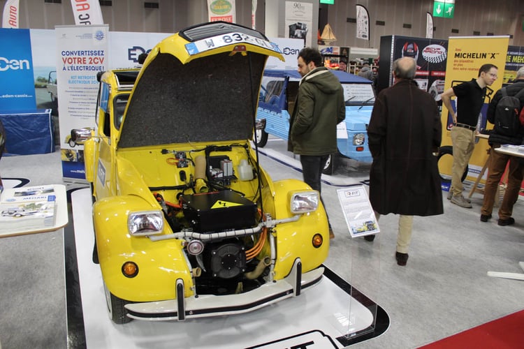 Sur le stand du 2CV Méhari Club Cassis, la grande nouveauté était la présence de la marque R-Fit qui s’attelle à la conversion électrique de Citroën 2 CV – y compris les fourgonnettes -, et Méhari d’origine, pour un budget qui démarre à 13.900 euros TTC, pose comprise, sur une base en parfait état. Les kits employés pour le rétrofit bénéficient de l’expérience de l’Eden.