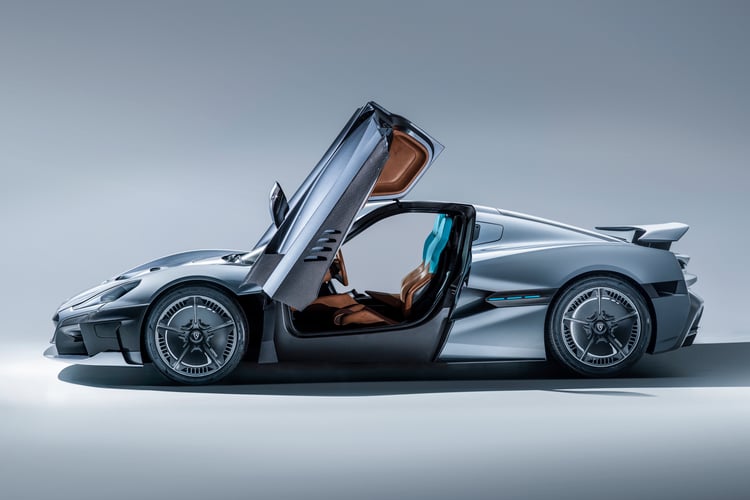 L’hypercar est assez classique sur le plan esthétique, son design ne tranche pas avec le style de sa catégorie. Elle est équipée de portières papillon et d’une structure en fibre de carbone renforcé par de l’aluminium sur les zones d’impact. La carrosserie intègre une batterie de capteurs destinés à la conduite autonome de niveau 4 : huit caméras, deux lidar, six radars et douze capteurs ultrasons. Connecté, le véhicule serait aussi capable d’adapter sa conduite en fonction du trafic et des conditions météo.