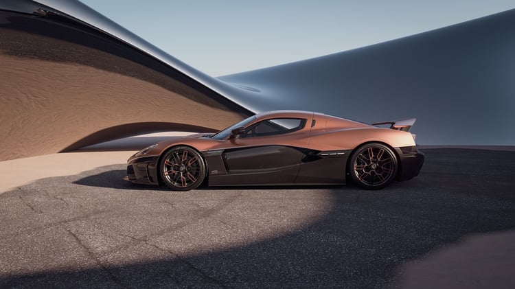 Seuls 9 exemplaires sur mesure seront construits. Comme vous pouvez le voir sur les photos, cette Nevera très spéciale sera habillée d’une peinture cuivrée développée spécialement pour le modèle. Pour Rimac, « le cuivre est un symbole de célébration et une couleur qui représente l’énergie ».