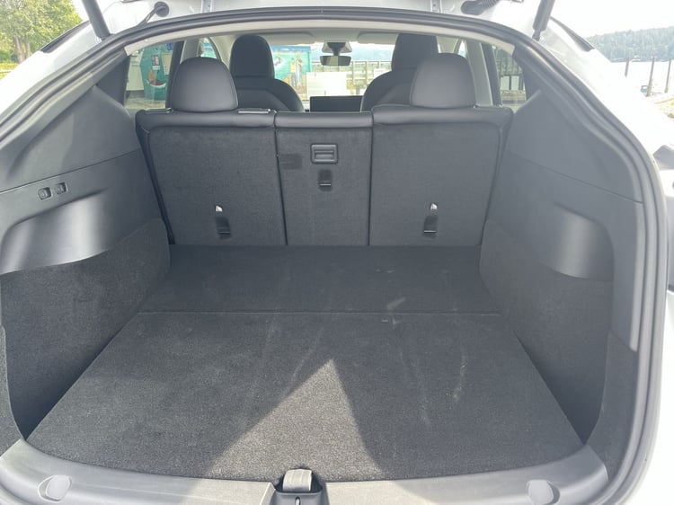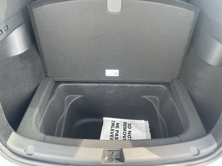 Dans le coffre, l’espace est tout simplement gigantesque. L’agencement est particulièrement bien pensé avec des bacs sur les côtés. Sous le plancher, un immense espace permet d’accueillir une petite valise. Et si cela ne suffit pas, il reste possible d’exploiter les 117 l supplémentaires du frunk.