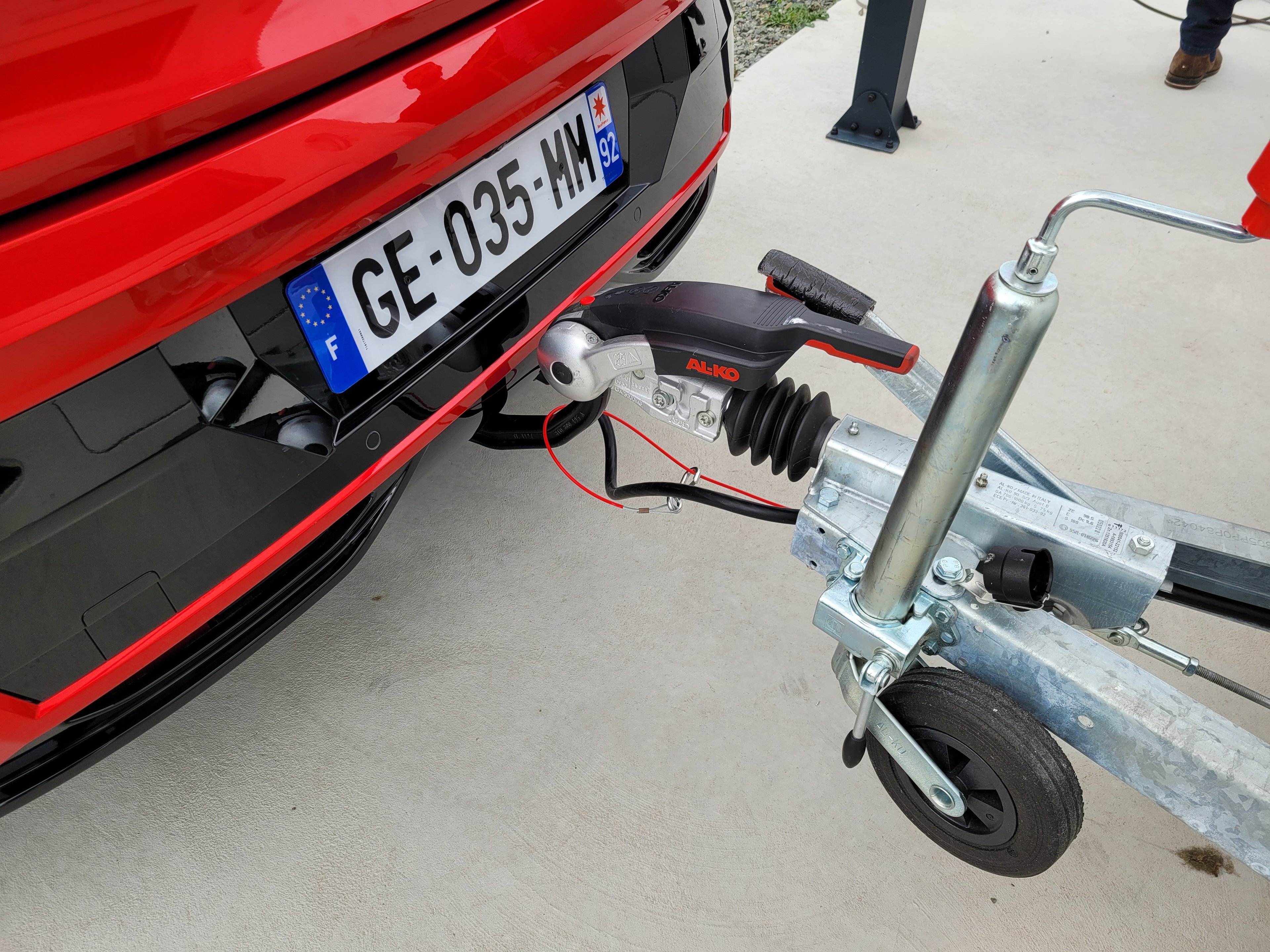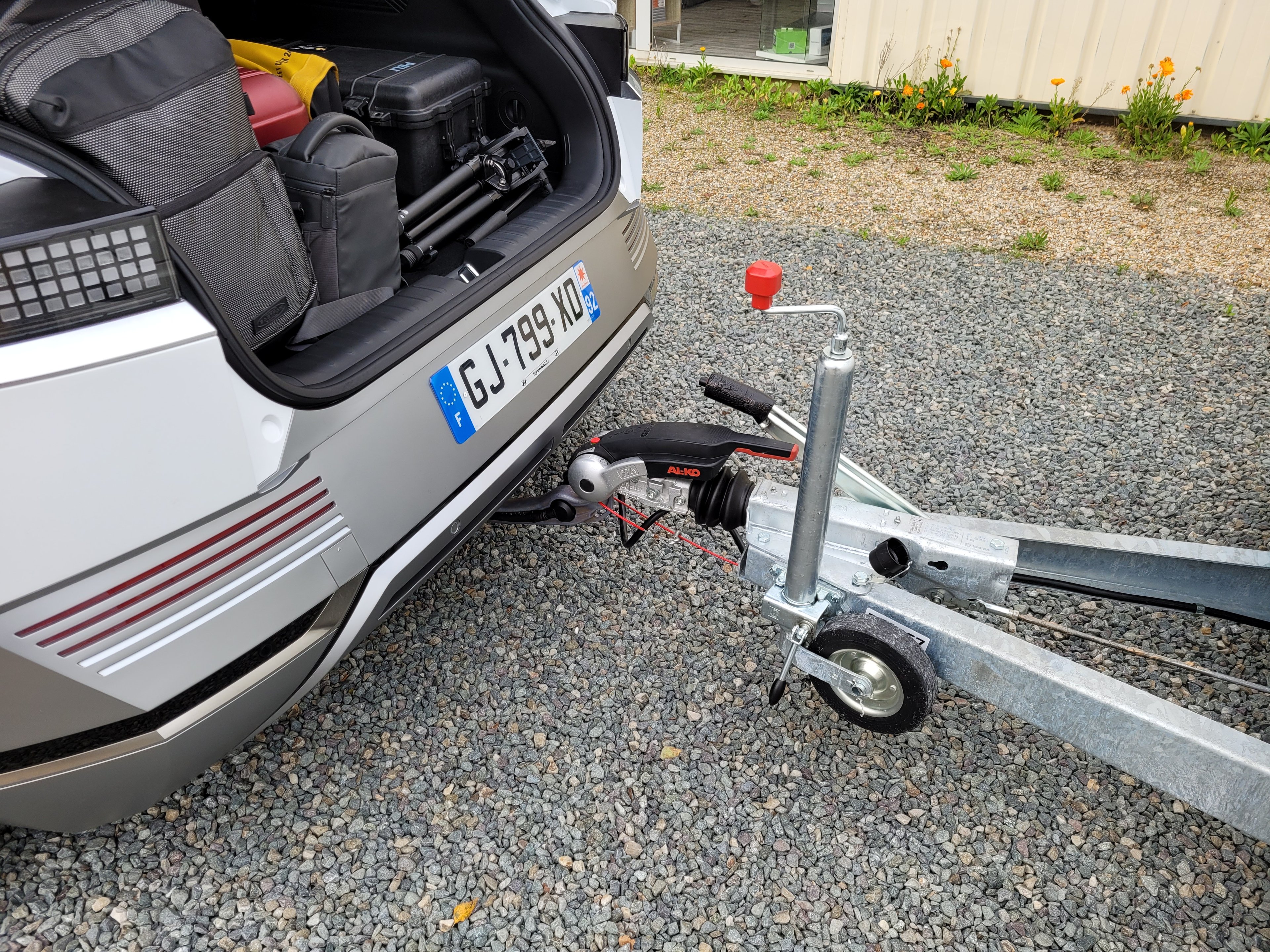 Est-ce compliqué d’atteler une caravane ? Pas vraiment une fois que l’on a saisi la méthodologie. On desserre le frein à main puis, avant de la remonter, on utilise la roue jockey sur les trois axes pour aligner col de cygne et flèche de la caravane. On verrouille par deux fois l’un sur l’autre à l’aide d’une paire de leviers, on n’oublie pas d’ajouter le câble de sécurité et on termine en branchant l’alimentation. Rien de bien sorcier. Et c’est tant mieux, puisque c’est une activité que nous serons amenés à reproduire à de nombreuses reprises lors de notre périple. Petite difficulté supplémentaire cependant pour la Renault puisque son col de cygne est amovible : il faut donc d’abord le monter puisque, rappelons, il est interdit de rouler avec sans caravane. C’est cependant relativement compliqué et il faudra un tutoriel trouvé sur Youtube avant qu’un tandem de mécaniciens des ateliers de Caravane 2000 parviennent en un clin d’oeil à déployer l’attribut de la Mégane. Côté Hyundai, c’est non seulement intégré mais aussi électrique : le col de cygne se déploie sur la simple pression d’un bouton à l’intérieur du coffre.