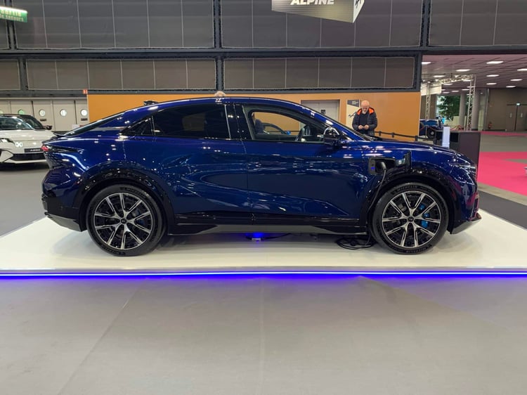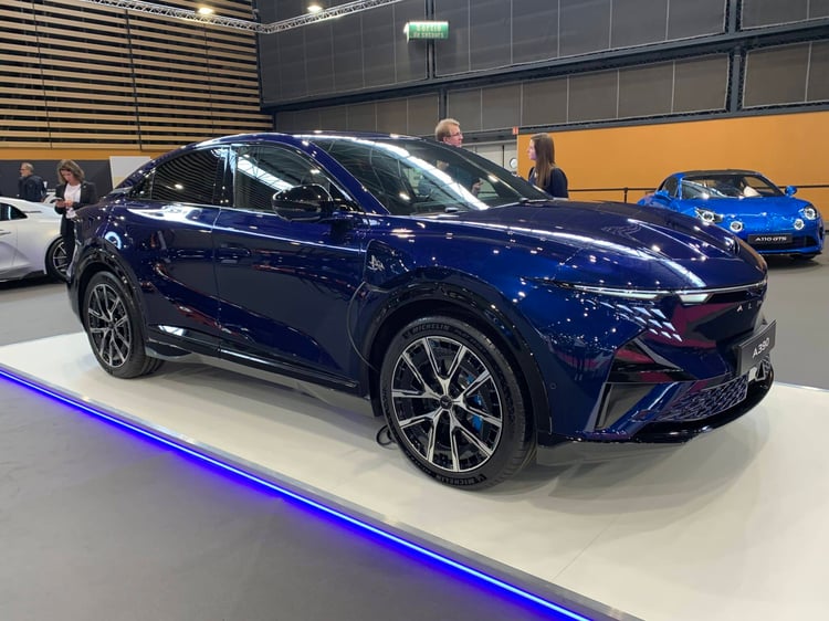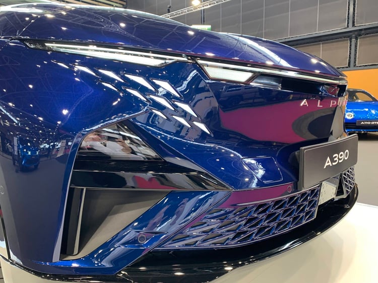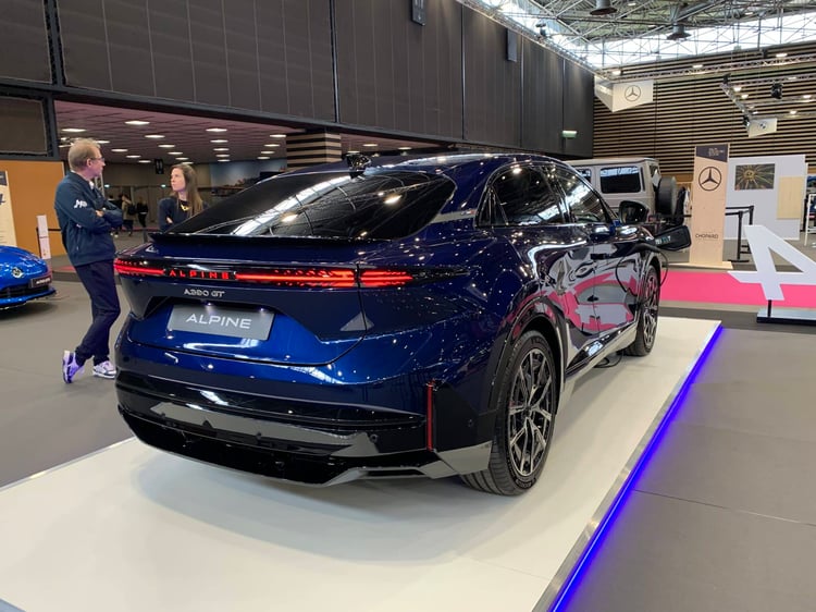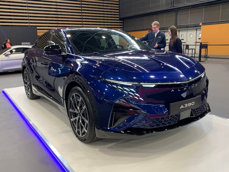 Attendu dans les concessions d’ici la fin de l’année, l’A390 se montre en avant-première aux visiteurs du salon de Lyon. Avec ce modèle, Alpine part à la conquête d’une clientèle plus familiale. Mais ne parlez pas d’un SUV, mot banni du vocabulaire Alpine. Il est vrai que ce modèle, long de 4,62 mètres, a plus des allures de berline surélevée. Reprenant la plate-forme AmpR Medium du Scénic, ce véhicule a une fiche technique spécifique, nettement plus sportive. L’A390 adopte une transmission intégrale avec trois moteurs électriques, un à l’avant et deux à l’arrière. La version GT annonce 400 ch, la GTS est à 470 ch ! La puissance de charge maxi a été portée à 190 kW.