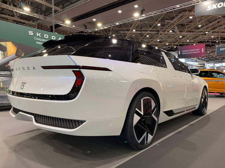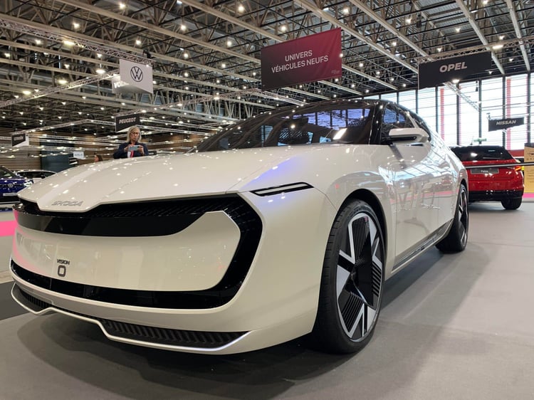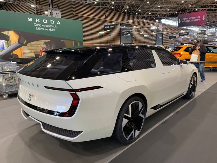Il y a aussi des concepts à Lyon, preuve que c’est un « vrai » salon ! Dévoilé il y a à peine plus de deux semaines à Munich, le Vision O se montre déjà chez nous. Ce break donne un avant-goût de la prochaine Octavia électrique. Mais Skoda précise qu’elle ne sera pas lancée avant la prochaine décennie ! Vu que c’est à long terme, ce prototype annonce déjà des évolutions pour le nouveau style de Skoda (le Modern Solid), notamment au niveau du visage avec une calandre qui englobe les optiques et se prolonge dans le bouclier. En bonne Skoda, le Vision O met l’accent sur l’habitabilité et le volume de coffre (650 litres). Il fait aussi le plein de nouvelles petites astuces, comme une enceinte Bluetooth amovible aimantée sous l’écran ou une glacière amovible dans la console centrale.