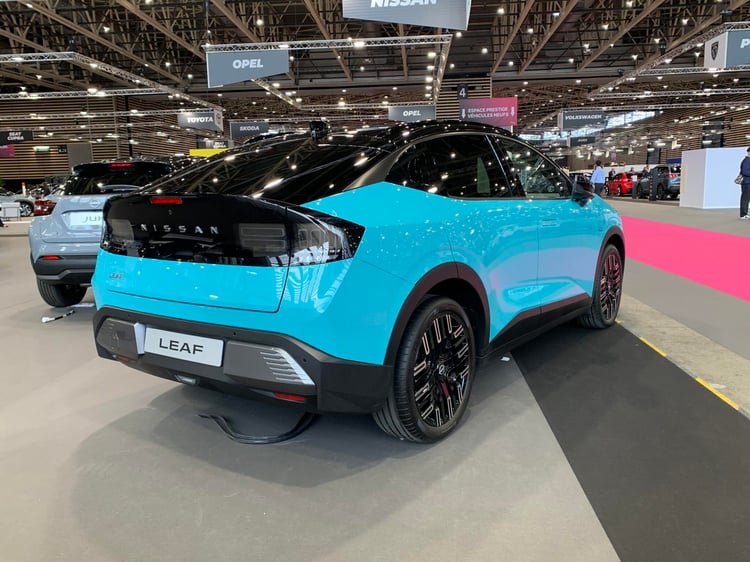 La deuxième avant-première de Nissan à Lyon est la troisième génération de la Leaf. La pionnière de la voiture électrique grand public se met enfin à jour, avec une nouvelle silhouette de SUV coupé. La Leaf 3 a le bon goût de garder une taille raisonnable, à 4,35 mètres. Reprenant la base de son grand frère Ariya, la nouvelle Leaf laissera le choix entre des batteries de 52 et 75 kWh, avec des autonomies mixte WLTP de 436 et 604 km. Un sacré bond en avant pour le modèle, qui était complètement dépassé sur le plan technique depuis quelques années déjà. Il y a une recharge rapide 150 kW et les fonctions V2G/V2L.
