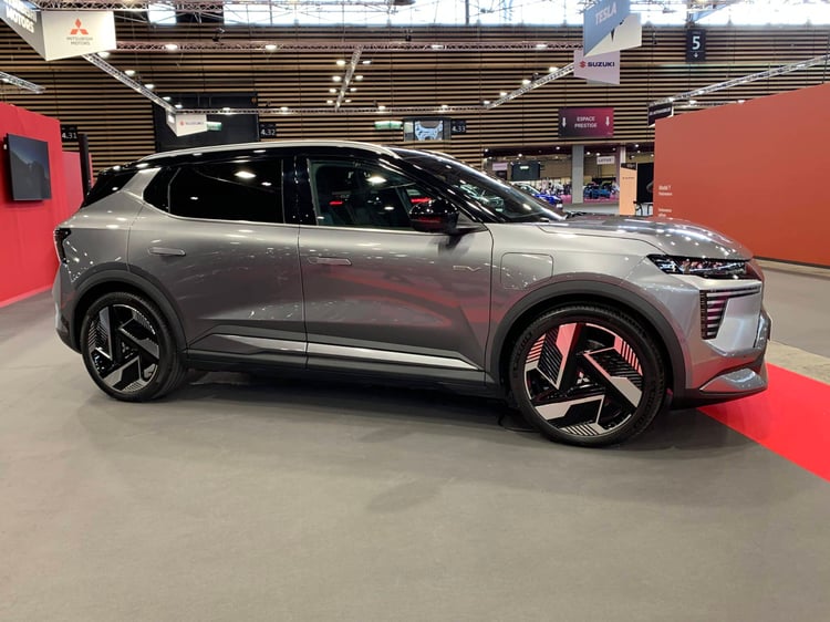 Mitsubishi est de retour sur le marché de l’électrique avec une nouvelle génération de l’Eclipse Cross. Comme la quasi totalité de sa gamme européenne, le modèle est dérivé d’une Renault, en l’occurence le Scénic. La marque a toutefois pu davantage personnaliser le design extérieur cette fois. On a par exemple ici une calandre pleine avec un motif en nid d’abeilles et une signature lumineuse en forme de boomerang. Ce n’est en revanche pas le cas de l’intérieur, identique au logo près. Et forcément, la base technique est la même. L’Eclipse Cross sera d’abord proposé avec la grande batterie de 87 kWh, qui donne une autonomie supérieure à 600 km. Prix de base : 44 990 €.