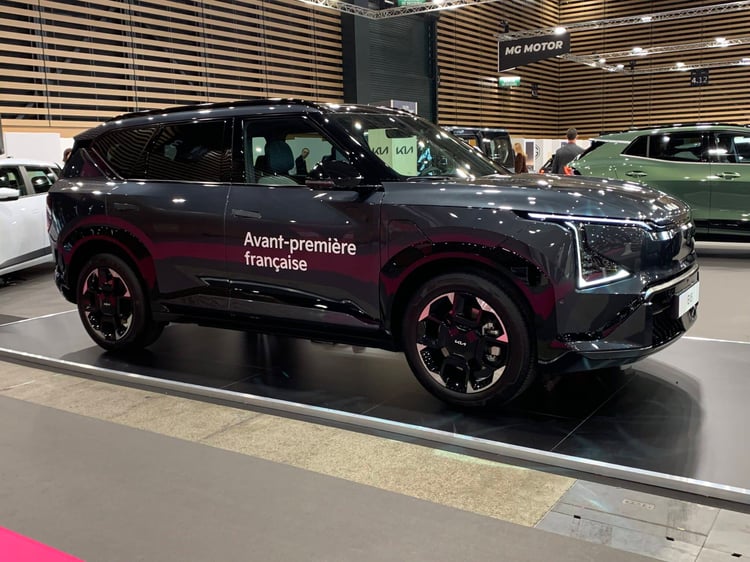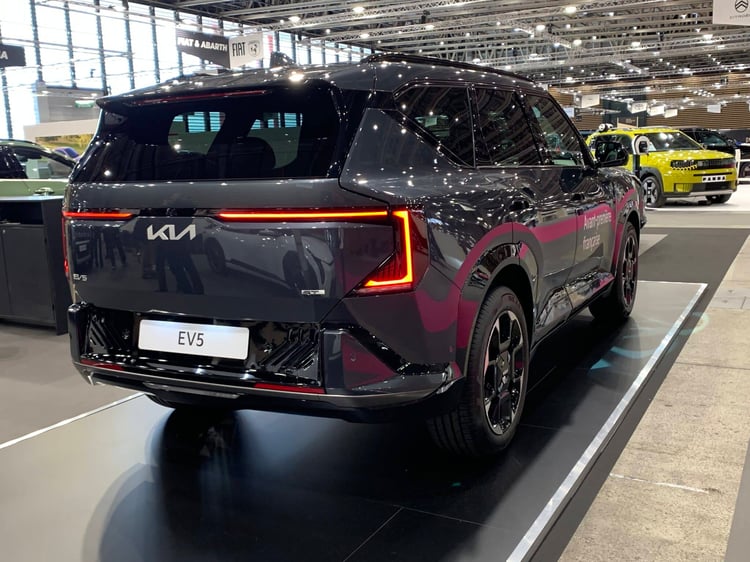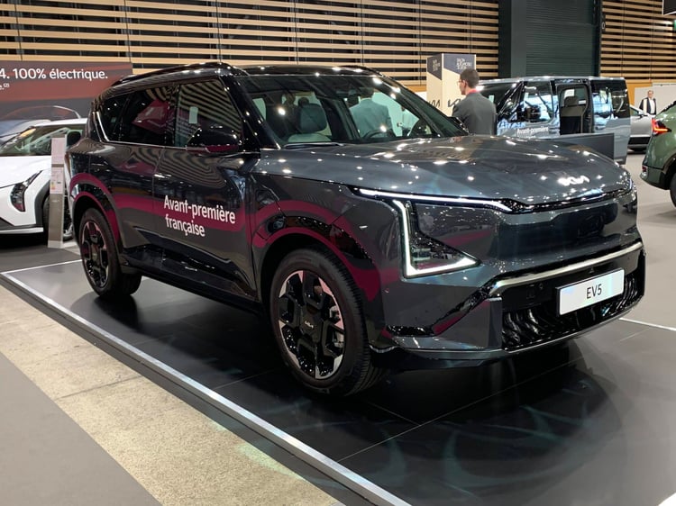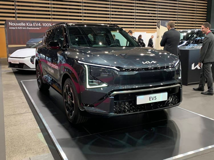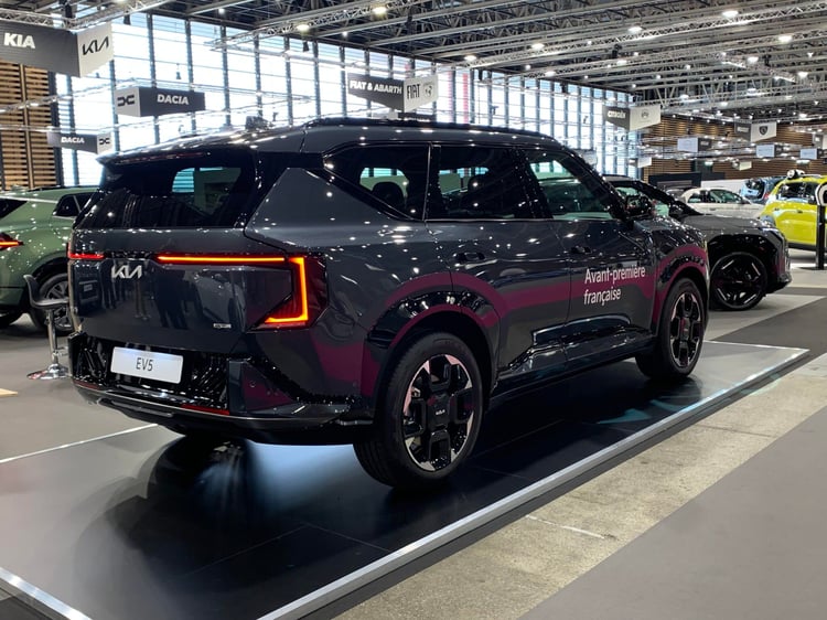 Programme riche pour Kia à Lyon. En plus des EV4 et PV5, il y a la première sortie française de l’EV5, un SUV familial, long de 4,61 mètres. Il se place ainsi en équivalent électrique au Sportage. Son look anguleux est dans la lignée des EV9 et EV3. Lancé il y a un moment en Chine, l’EV5 arrive en Europe avec une batterie NMC de 81,4 kWh, qui donne une autonomie de 530 km. Le modèle ne profite pas de l’architecture 800V de l’EV6, sa puissance de recharge maxi est donc de 150 kW. Il faut se contenter d’un unique moteur de 160 kW, placé à l’avant.
