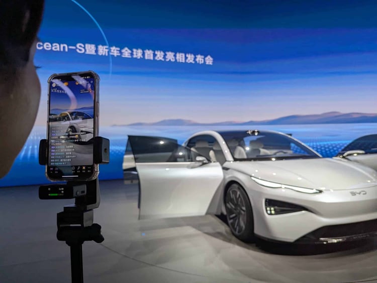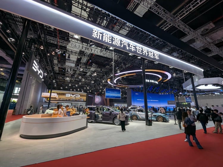 Même chose avec le stand BYD qui, à lui seul, a réussi à monopoliser l’attention de la très grande majorité des visiteurs au moment de sa conférence de presse, conclue par six levées de voile. BYD n’était pas le seul à attirer le regard des visiteurs sur ce salon de Shanghai qui cumule, lui aussi, les superlatifs : 1 000 exposants, dont 150 ayant réservé une conférence, se sont partagés les 12 pavillons pleins à craquer, et ce, afin de présenter pas moins de 100 nouveautés ! Impressionnant, de nos yeux d’Européens, désormais habitués à une actualité nettement moins riche. Sans surprise, ce sont les constructeurs maison qui mènent la danse. Et si les concurrents, surtout allemands et japonais, n’hésitent pas à s’exprimer, ils n’attirent pas autant les foules sur leurs stands.