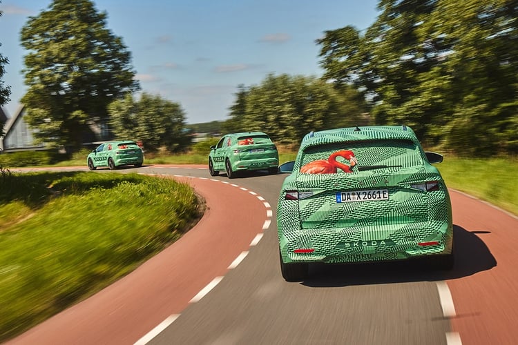 Lors de cette présentation en avant-première de l’Elroq, Skoda nous a invités à prendre le volant d’exemplaires encore camouflés. Nous avons bouclé cette prise en main avec une moyenne de 14,9 kWh/100 km, soit 520 km d’autonomie totale théorique. Mais il faut rappeler que les conditions météos et routes des Pays-Bas très favorables n’ont guère été représentatives. Reste que cette nouvelle chaîne de traction électrique a déjà montrée tout son potentiel entre nos mains avec la Volkswagen ID.7, certes plus effilée que l’Elroq (un Cx de 0,23 contre 0,26), mais à peine plus lourde (2 097 kg contre 2 061 kg pour le SUV). Voilà qui laisse aussi envisager des performances similaires, et nettement plus engageantes que celles de ses concurrents français. A la conduite, la plateforme MEB et les réglages Skoda sont orientés vers la sérénité de conduite. En ville, l’agrément est au rendez-vous, le diamètre de braquage de 9,3 m facilite les manœuvres et le freinage régénératif réglable avec des palettes s’avère utile. Sur route, le comportement est plus rassurant qu’éclatant. Seul axe d’amélioration : le confort de suspension un peu sec de ces modèles de pré-série, dont les réglages pourraient évoluer d’ici au lancement sur les routes. On aura l’occasion d’essayer les versions définitives.