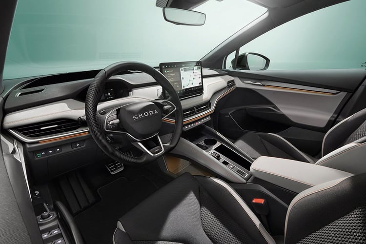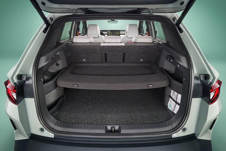 Commune à la majorité des voitures électriques du groupe (hors plateformes partagées Audi/Porsche), la base technique offre tout un éventail de motorisations, avec quatre versions et trois batteries différentes. En entrée de gamme se trouve la version 50, dotée d’un accumulateur de 52 kWh de capacité nette (55 kWh brut) et d’une machine électrique arrière de 170 ch, pour une autonomie de 350 km. La déclinaison 60 adopte la nouvelle batterie de 59 kWh de capacité utile et le désormais connu bloc de 204 ch pour viser un rayon d’action de 390 km. C’est cette version qui est disponible avec le plus grand nombre de finitions. On retrouve en haut de gamme la version 85, doté d’une pile de 77 kWh et de la récente machine APP550 de 286 ch pour 545 Nm de couple. C’est cette configuration technique qui permet au Skoda Elroq d’afficher une autonomie maximale de 560 km selon le cycle de mesure WLTP. Enfin, le haut de gamme 85x doté de deux moteurs pour former une transmission intégrale de 299 ch arrivera plus tard.