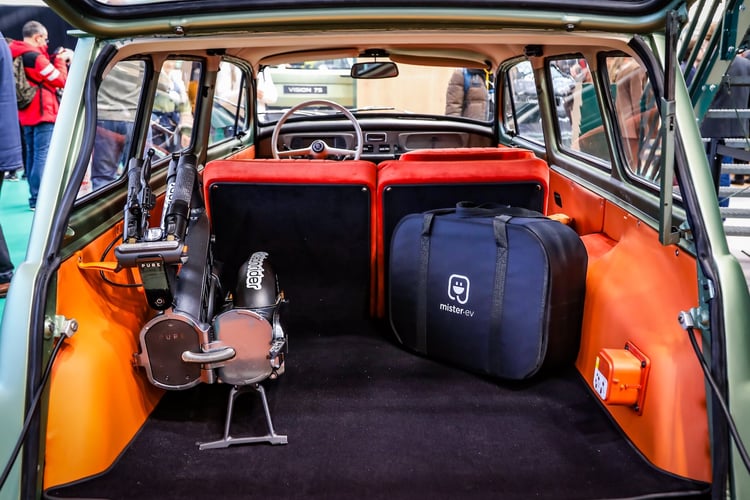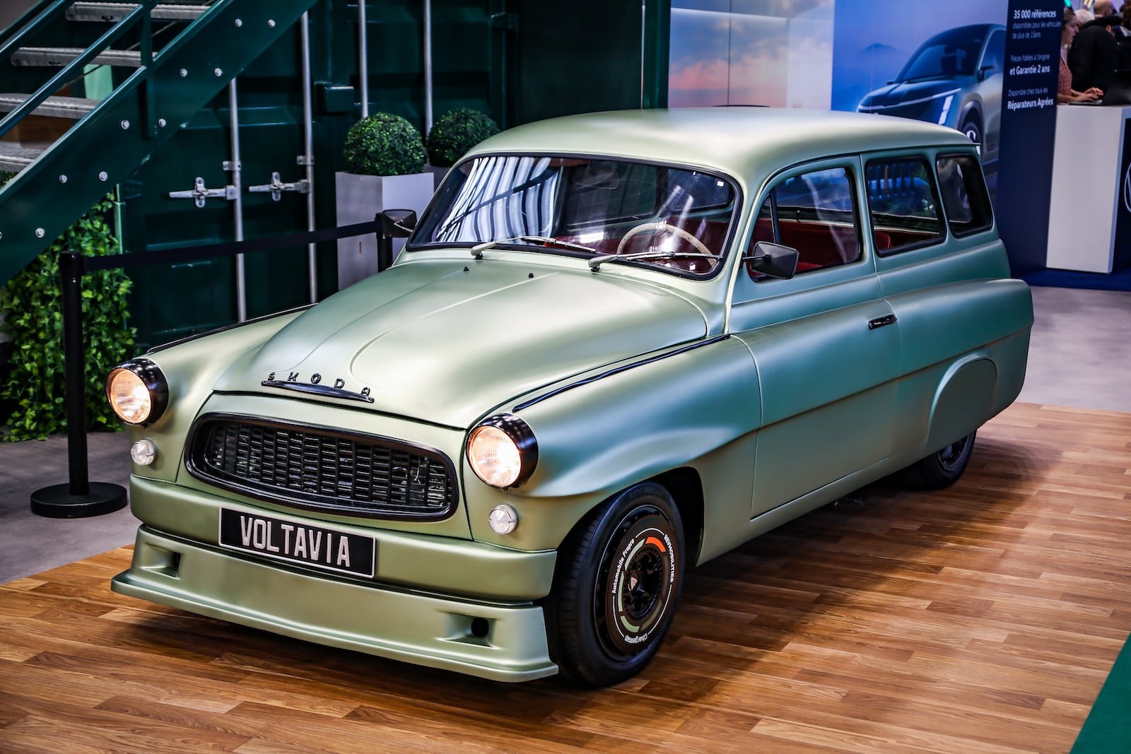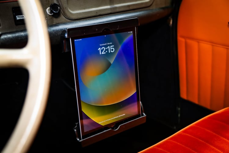 Enfin, pour définitivement nous approprier cette Skoda Voltavia, nous lui avons apporté quelques modifications aérodynamiques assurés par les ateliers de Style & Design dont les grandes compétences ont aussi pu être mises à contribution dans l’habitacle, avec notamment une sellerie orange du plus bel effet. Pour permettre à la Voltavia de prendre sereinement la route et en faire une véritable voiture électrique du 21ᵉ siècle, une dernière cerise sur le gâteau a été ajouté avec l’ajout d’une tablette permettant au conducteur d’accéder à l’application Chargemap et son planificateur.