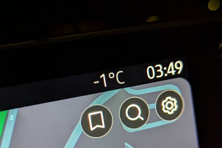 S’il est assez courant que les utilisateurs de voitures électriques préchauffent l’habitacle de la voiture avant de partir pendant la recharge nocturne, tous n’ont pas cette chance. Dans ce dernier cas, la consommation explose comme nous l’avons mesuré. Après 24 h 00 de stationnement sur notre ligne de départ, et sous un air à 0,9 °C au moment de partir, le thermomètre dans l’habitacle a indiqué un air à 5,2 °C. Même chose, ou presque pour la batterie, conservée à une température normale à la fin d’une douce journée. Avec la climatisation en mode Auto à 18,5 °C, la consommation a explosé, avec 19,9 kWh/100 km au bout d’une dizaine de minutes, contre 13,5 kWh/100 km au même checkpoint lors de notre première mesure à chaud par 12 °C ! Mais la consommation s’est rapidement stabilisée : au point de contrôle suivant (20 min), notre sonde intérieure affichait déjà la température cible de 20 °C.