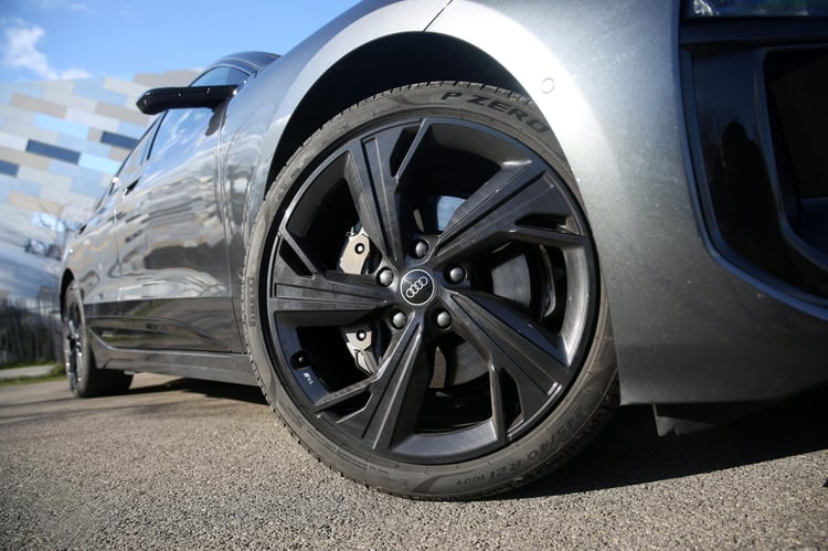 Contrairement à Porsche, Audi propose toujours plusieurs modes de freinage régénératif. On retrouve un vrai mode roue-libre, deux forces modulables avec les palettes et un mode B sur la commande de marche. Ce dernier est le seul à arrêter seul la voiture. Sans résistance, le break peut atteindre près de 1,4 km depuis 80 km/h. Avec le premier mode de freinage régénératif, la distance passe à 178 m. Le mode B, puissant, ne réclame que 129 m pour freiner la voiture depuis 80 km/h.