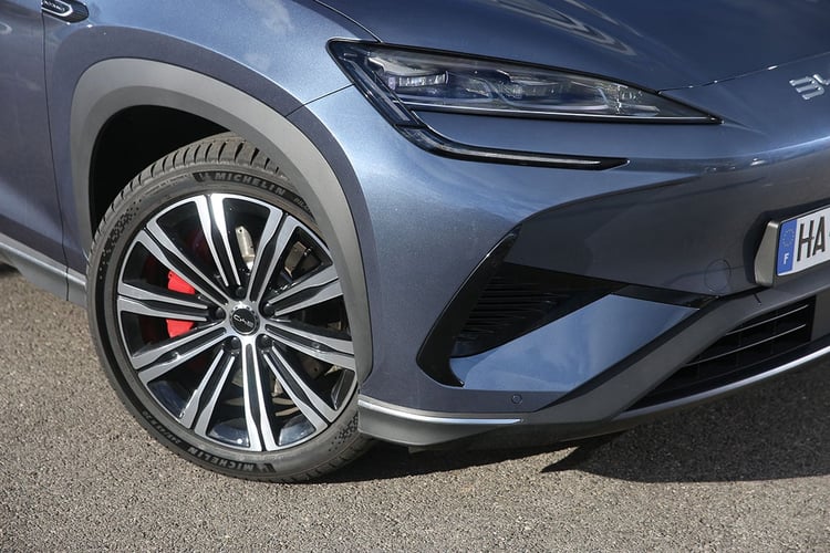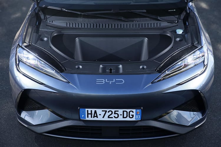 En haut de gamme se trouve la version Excellence AWD. Elle reçoit une batterie de 91,3 kWh de capacité nette, composée des désormais connues cellules Blade. Il s’agit de cellules prismatiques dotées d’une chimie LFP, pour une tension totale réelle de 538 V. Elle se distingue avec sa puissance de recharge rapide, donnée pour un pic de 230 kW. Cette batterie alimente une paire de machines électriques pour un total de 530 ch (390 kW) et 690 Nm de couple. La machine synchrone arrière est utilisée en permanence. De type asynchrone, la machine avant n’est activée que lors des fortes demandes en puissance ou en fonction du mode de conduite.