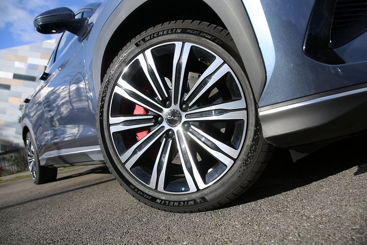 Caractérisé par des étriers rouges, le système de freinage dissipatif du BYD Sealion 7 est parfaitement dimensionné pour canaliser sa masse. Avec 62 m pour s’arrêter depuis 130 km/h, il figure dans la moyenne de nos relevés, même s’il ne fait pas mieux qu’un Audi Q6 e-tron Quattro (60 m), ni même qu’une Mercedes G580 EQ nettement plus lourd (61 m). Aussi, si les chiffres sont là, la sensation à la pédale, spongieuse, ne donne pas cette impression.