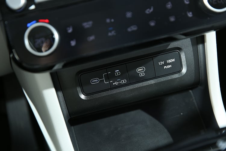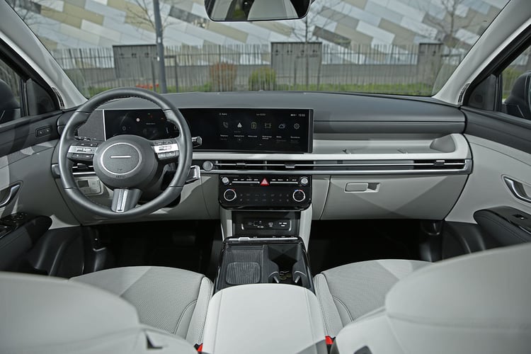 C’est à bord que les évolutions du Hyundai Tucson restylé sautent le plus aux yeux. Le poste de conduite est désormais dans les rangs avec une architecture (trop) connue, qui consiste à poser une large dalle numérique derrière le volant. Mais on apprécie toutefois la bonne visibilité de l’ensemble, l’écran central légèrement orienté vers le conducteur, et l’imposante platine numérique dédiée au confort thermique à bord.