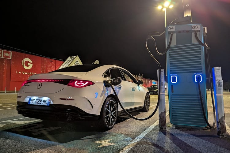 Enfin, notons que la Mercedes CLA ne se recharge pas toujours à la pleine puissance. En l’absence de convertisseur de tension, la voiture n’est pas compatible avec les bornes 400 V, difficilement reconnaissables à moins de s’accroupir pour lire la plaque signalétique. Car la puissance affichée n’est en rien un indicateur fiable, pas même avec la navigation embarquée de la voiture qui fait soit-disant la différence : référencées comme des bornes de 300 kW sur le système, des bornes de 200 kW et 150 kW ne nous ont jamais donné plus de 100 kW. Aussi, une borne de 175 kW peut s’avérer compatible, alors que les Supercharger Tesla de 250 kW ne le sont pas. Même chose pour les bornes tristandards avec la prise CCS 50 kW.