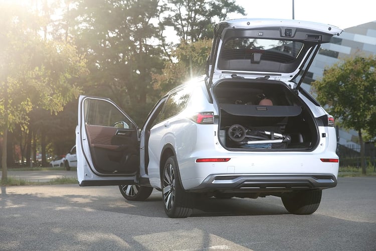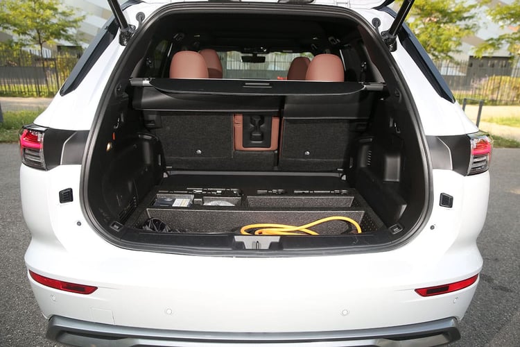 Sous le capot prend place un 4-cylindres essence atmosphérique (code 4B12), qui fonctionne selon un cycle Atkinson à un taux de compression de 11,7:1. Il est associé à une paire de machines électriques, l’une de 116 ch/255 Nm à l’avant, l’autre de 136 ch/195 Nm à l’arrière. C’est cette dernière qui offre au SUV le statut de transmission intégrale, puisqu’il ne dispose pas d’arbre de transmission mécanique. La puissance cumulée grimpe à 306 ch selon la fiche technique. Les deux machines différentes sont alimentées par une batterie Envision AESC de 22,7 kWh de capacité brute, fonctionnant sous une tension de 355 V.