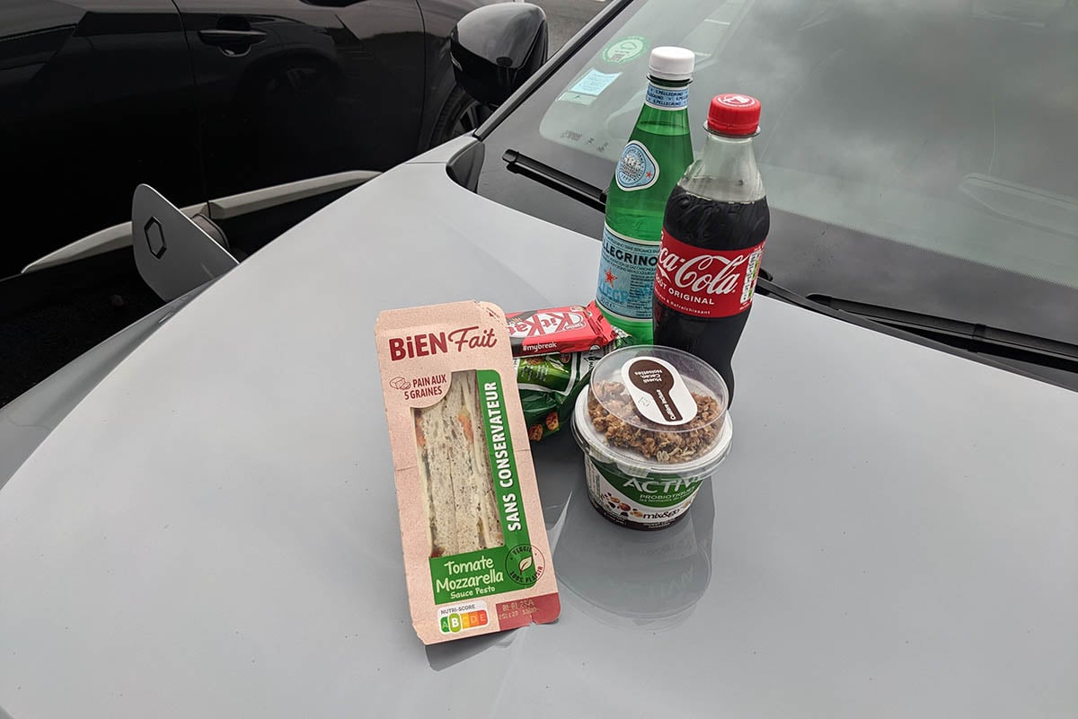 La très grande majorité des stations de recharge que nous fréquentons sont situées sur des aires d’autoroute. Des installations qui offrent toutes les commodités nécessaires pour se reposer et se restaurer avant de reprendre la route. Mais rares sont les opportunités de profiter de ces services, notamment au beau milieu de la nuit. Seule solution pour faire le plein pendant qu’on regarde défiler les chiffres sur les bornes : le bon vieux club-sandwich ! Un monument de la gastronomie routière, qui pourrait presque nous permettre d’ouvrir un blog dédié après avoir goûté toutes les saveurs. Notre chouchou : le Bien Fait saveur tomate mozza’ !