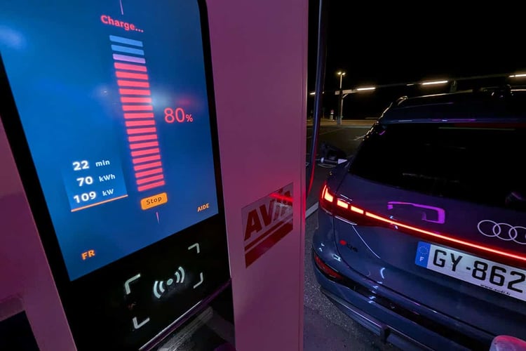Supertests 2023 : nos coulisses en chiffresDésormais, nous ne prenons plus d’exemplaires équipés de pneus hiver, même si notre base de données nous permet aujourd’hui d’estimer en exclusivité la surconsommation en fonction des classifications des pneus. Avant de démarrer chaque test, nous vérifions à froid et corrigeons si nécessaire la pression des pneus aux indications des constructeurs. Seule la géométrie du véhicule n’est pas vérifiée. Nous effectuons ensuite une recharge rapide de la voiture afin d’obtenir un taux de charge proche de 80 % au moment où nous allons effectuer des mesures. Pourquoi pas à 100 % ? D’une part, nous roulons ensuite 30 à 45 minutes sur route pour permettre à la batterie de se stabiliser sur sa température idéale de fonctionnement, et à l’habitacle de se maintenir à la température demandée. D’autre part, cela permet de laisser l’opportunité au système de régénération de fonctionner. Avant de démarrer, nous nous assurons que le système de climatisation, en mode Auto intermédiaire à 20 °C, affiche une consommation stable préalablement évaluée.