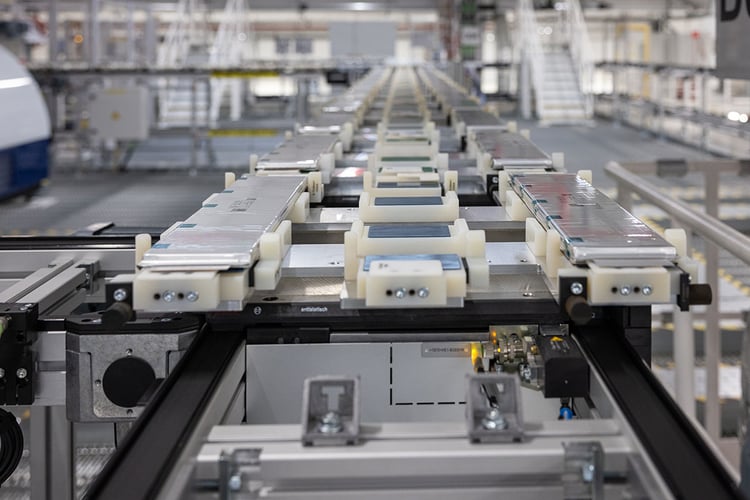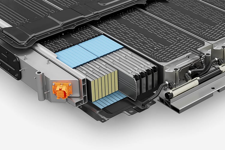 Mais on peut également penser à la recherche d’une meilleure densité. Comme nous l’avons vu dans l’usine de production des batteries d’Horna Streda, les cellules sont d’abord pressées par paquets de huit, puis deux packs sont intégrés dans un module. Le coffre à batterie reçoit un total de 16 modules, d’un poids unitaire final de 90 kg. Un choix permettant d’offrir le meilleur compromis entre prise de masse, augmentation de la densité (7 % par rapport à la Taycan) et réparabilité. Ce dernier critère explique aussi pourquoi Porsche n’a pas fait le choix d’un principe de raccordement Cell-to-Pack, même si toutes les cellules sont ici branchées en série (192s1p).
